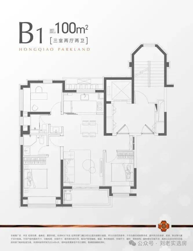 · 建面约100m²三房两厅两卫,空间利用率拉满!