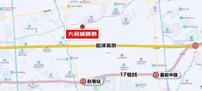 此外,从「大名城映辰」出发,乘坐17号线往西7站直达青浦华为研发中心,对于华为上班的科创人士,也是非常友好。