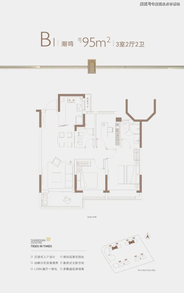 在格局上,户型三开间朝南+动静分离,室内通风、私密性俱佳。