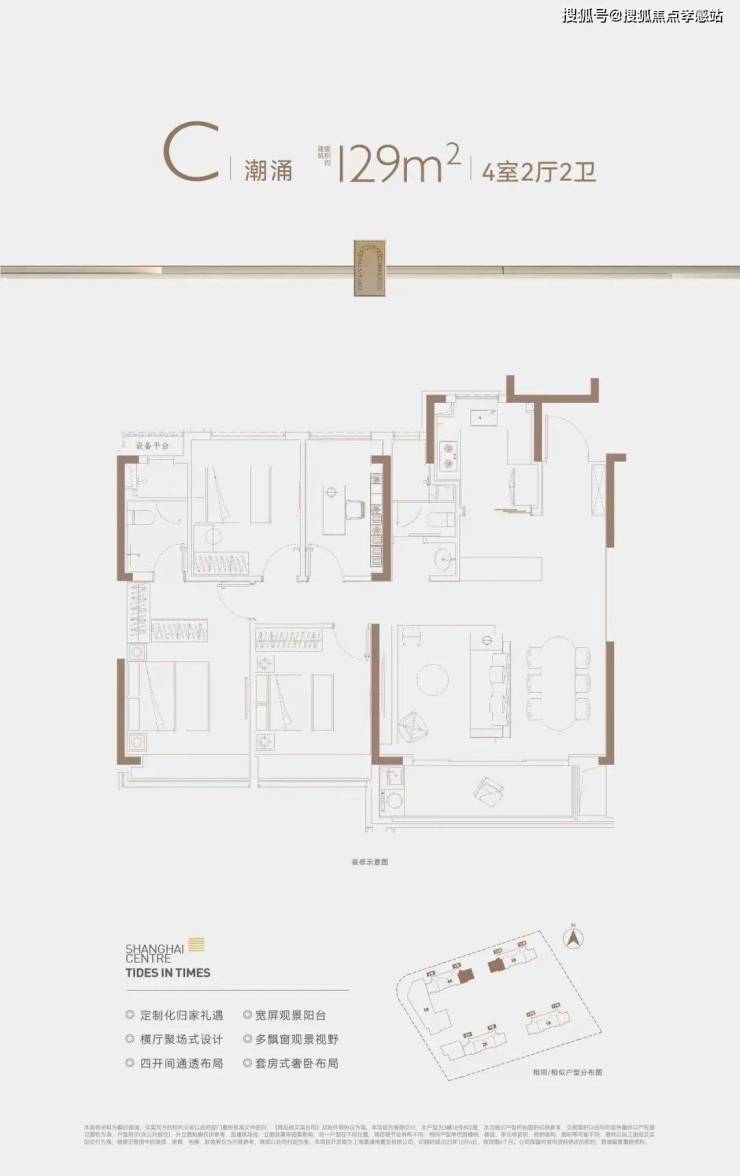 建面约129㎡真4房产品,并且四开间朝南的设计,这个户型的南向面宽和尺度感堪比别墅。