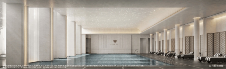 奢朗尺度,打造满水式流体游泳体验,泳池以奢材定制,高品质美学致敬城市。