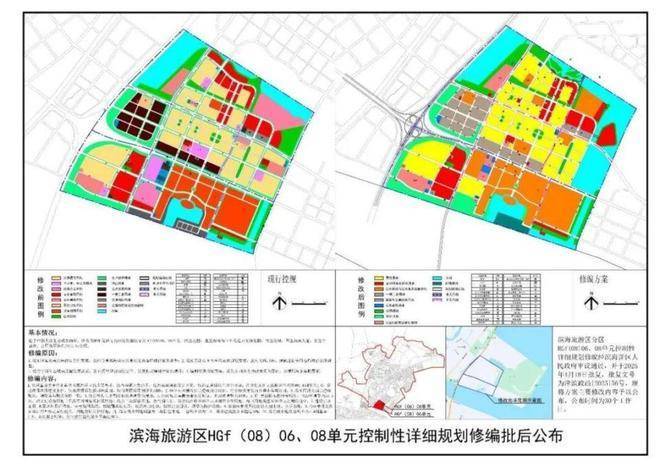 滨海旅游区HGf(08)06、08单元,主要调整出多个新宅地和公共管理与公共服务设施用地。