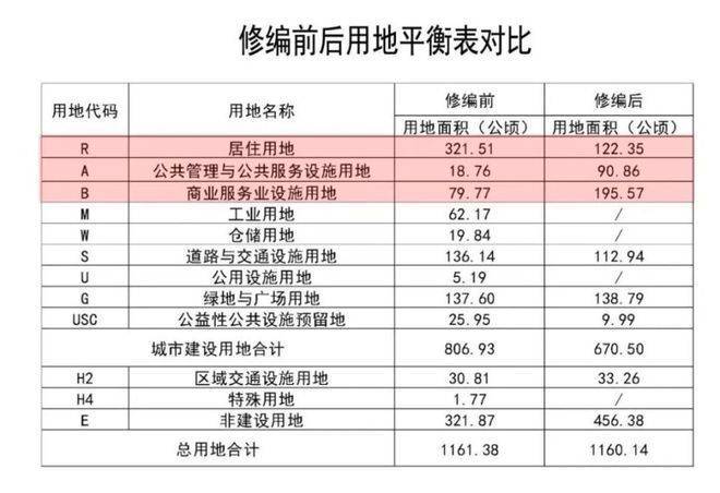 居住用地面积,由原来的321.51万平米调整为122.35万平米;