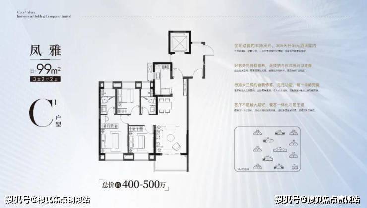 · 建面约99㎡户型则进阶3房2卫,适配对品质有需求的首置或首改客户!