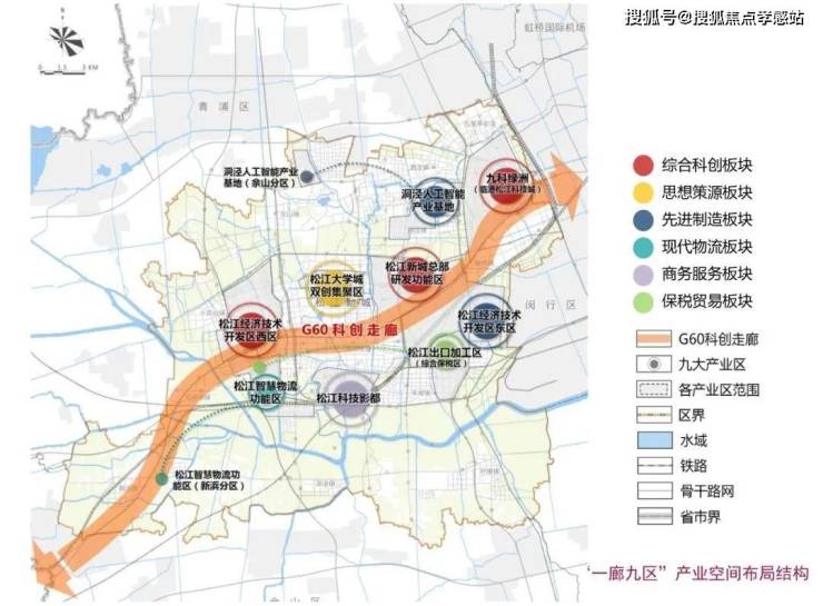 G60科创走廊“一廊九区”布局,来源上海松江