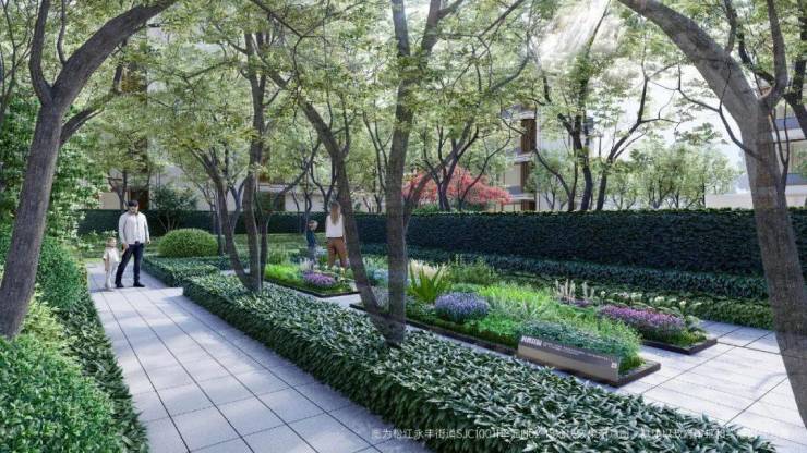 项目南北地块坐拥两大滨水景观,依水而建,与邻为伴,以梦幻油画般的色彩,辉映千年松江古韵,呈现一片更加具象的自然景观。沿着蜿蜒曲折的林下空间漫步,心情随着潺潺河水流动,喧闹与寂静沉淀于此,一帧一画都是惬意。