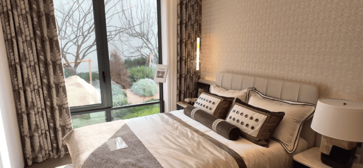 重点说一下户型样板间,120平3房2卫户型采用空间更合理的竖厅结构,南向开间到达约4.8米,南向双阳台拓展,结合3.1米层高进入客厅空间感很足。