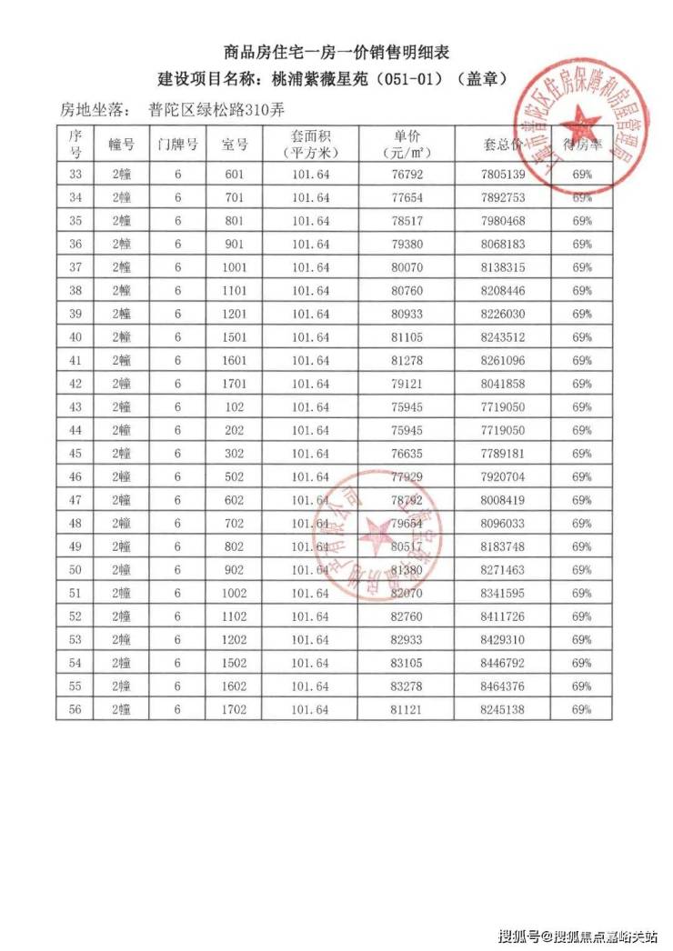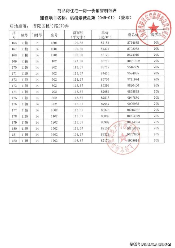 项目一房一价表▼