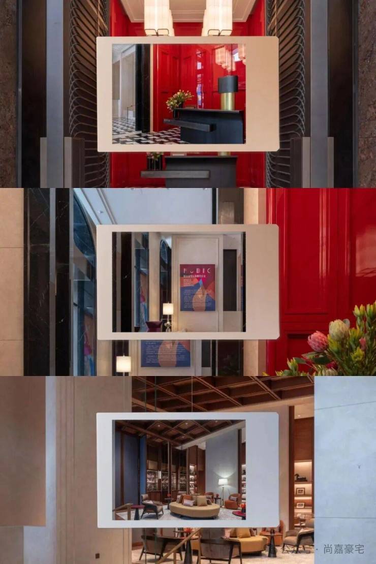建筑立面:延续石库门经典语汇,采用红色陶砖、灰砖打造三段式立面,融入拱券、柱头等历史元素;同时引入巴西进口奢石、金属线条、现代铝板等当代材料,在“新”与“旧”之间找到平衡;