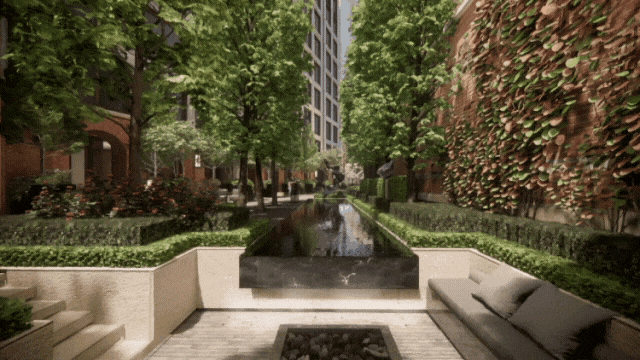 社区内打造花园、水院、雕塑等多重景观节点,让归家之路成为一场优雅的旅程: