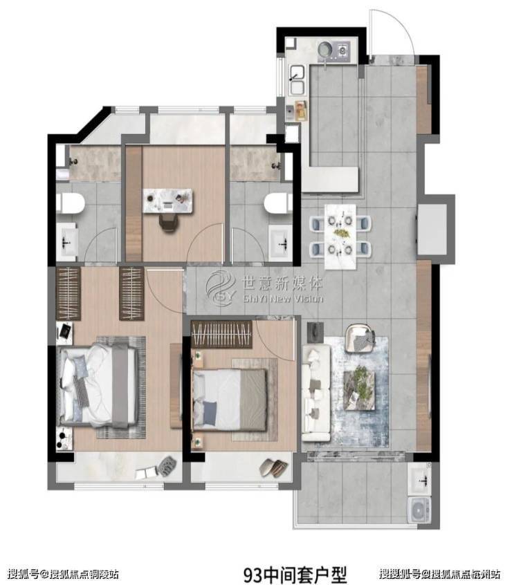 象屿深入考量空间与场景的运用,将生活中看得见与看不见的细节进行了细致打磨。玄关、阳台、厨房、卫浴均设置科学收纳空间,营造高品质生活体验的同时,更带给居者层建面约83㎡3房2厅1卫