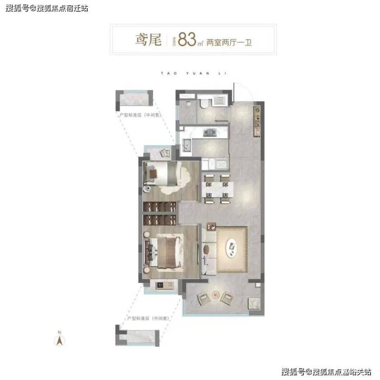 建面约83㎡2房,可谓久旱逢甘霖的产品,给单身/小两口/老夫妻以及其它成员结构简单的家庭提供了功能更合适、价格门槛更适宜的产品!