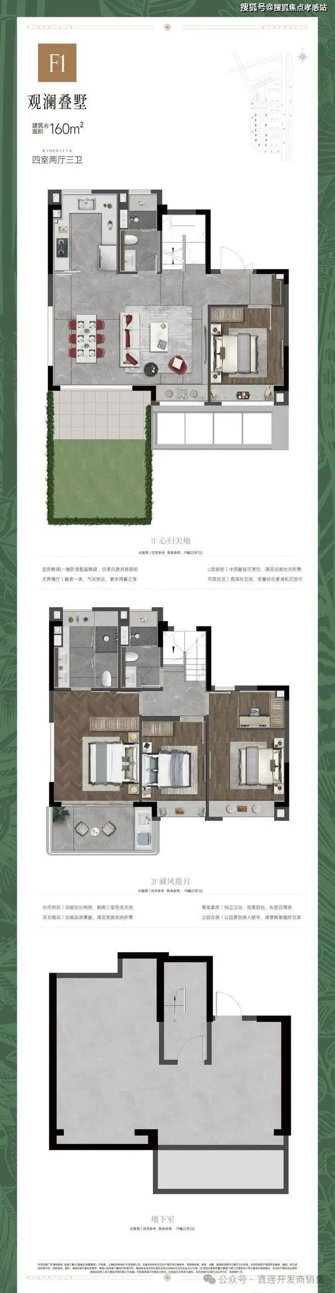 除了小高层的神户型之外,项目还带来了改善叠加产品,基本是上下双叠设计,无论是亲地下叠,还是亲光上叠,都有几个亮点值得关注: