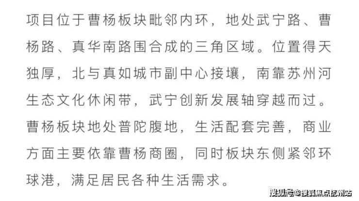 项目位于武宁路、曹杨路、真华南路围合而成的三角形区域内。毗邻普陀“一轴两翼”功能布局中武宁路科创发展轴。