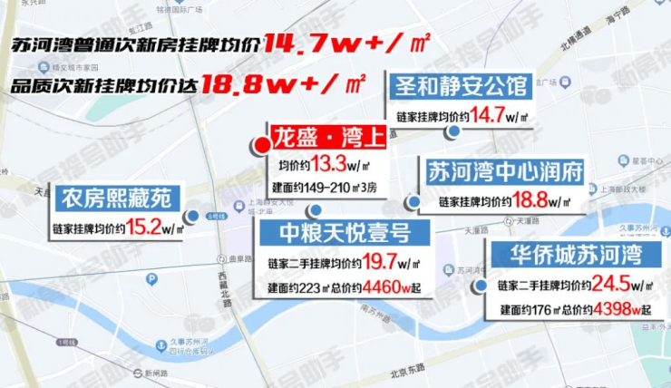 「⛅☀︎龙盛湾上售楼处电话:400-8787-740☎☎☀︎」所在的苏河湾板块,次新房挂牌均价势头依旧迅猛,普通次新房的链家挂牌均价在15w/㎡左右,而品质次新豪宅已经达到18.8w/㎡以上,而「⛅☀︎龙盛湾上售楼处电话:400-8787-740☎☎☀︎」一期均价仅约13.3w/㎡,与其品质相当的次新豪宅相比存在约66%的倒挂率。(数据来源于链家网,截止于5月17日,仅供参考)