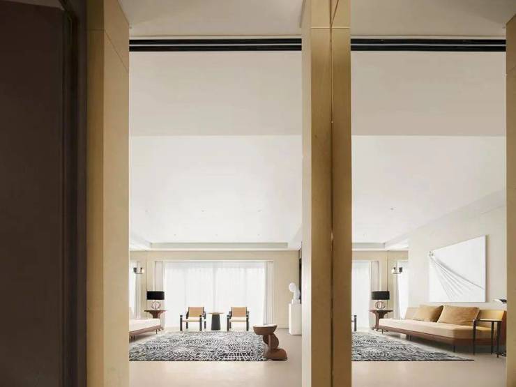 项目层高突破传统住宅达到约3.3米,空间感十足!搭配墙面、地面选用的米白色天然石材,以及顶部特殊的圆弧造型,通透造型空间尽显塔尖气质。