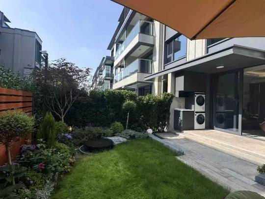 建筑采用新亚洲风格,外立面以进口天然石材、铝板、真石漆打造,历久弥新。社区园林特邀日本枯山水大师设计,打造“一轴三巷五院”景观体系,中央轴设镜面水池与枯山水庭院,三条巷道以松、竹、梅为主题,五大私院分布禅意茶室、棋艺台等休闲空间。