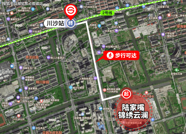 除此之外,陆家嘴锦绣云澜位于川沙首站,距离川沙站直线约750米,步行可达!(数据来源:百度地图)示意图