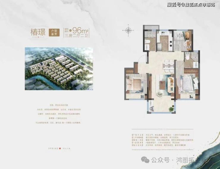 建面约96㎡的3房2厅2卫户型,完全是当下的经典款。
