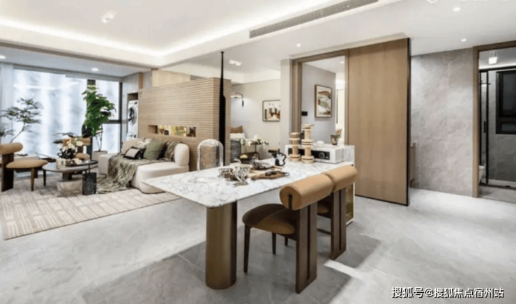 还有很多魔鬼小细节,让居住更加舒适。客厅、卧室墙面均为墙布交付,电视背景墙为岩板交付,这两项几乎在总价400万级的项目里是看不到的;还有顶面交付射灯及隐藏灯带,使得居家的灯光更加柔和温馨!阳台大面积玻璃落地窗,视野通透;阳台移门可结合需要进行地轨拉平、从而地砖通铺实现餐客厅阳台一体化。