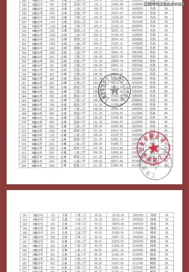 项目一房一价表