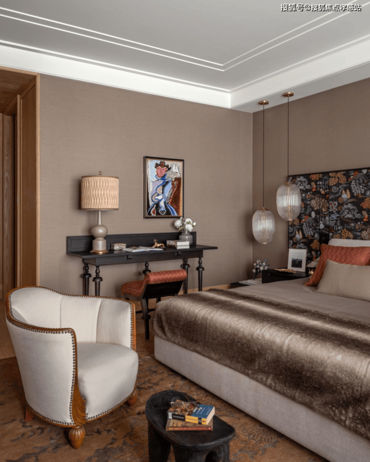 卧室去繁就简,【天潼里】售楼处电话:400-885-5420✨✨以沉静温暖的配色和材质,营造和平宁静的氛围。一幅山水花园刺绣屏风点缀其中,予人舒适松弛之感。可移动家具组合,既独立又彼此链接,便于情感交换。