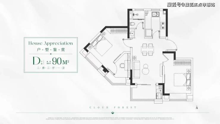 建面约90㎡2房1卫户型,对于预算有限但是想要入住黄浦江沿岸、入住三轨交TOD,享受前滩繁华的购房者来说,这个户型非常值得一看。