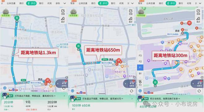 不同的距离步行到地铁站的差距有多少呢?来看百度地图的测距:
