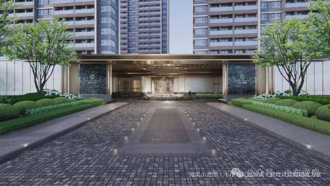 同时,入户大堂立面造型延续了主立面的框与线结合,飘顶弧形雨棚,组成高定入户大堂,增加入户仪式感。