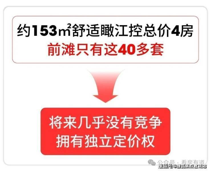 另外,前滩新房开发已近尾声,这类“舒适瞰江控总价4房”只有前滩滨江道有, 且只有这40多套 ,入手后在整个前滩几乎无竞品,未来将掌握更强的定价权。