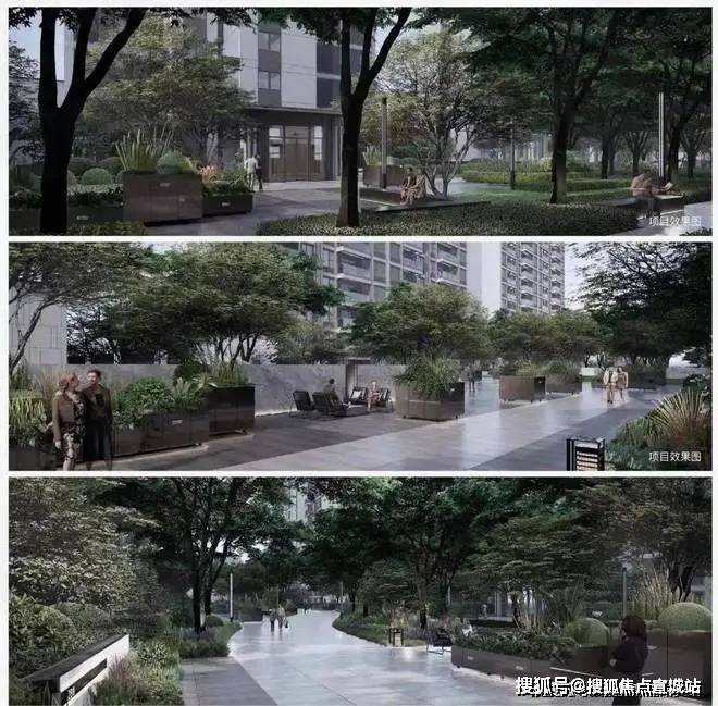 项目精心规划“一环一轴三园”,于建筑中另辟一方天地,以绿意包裹整个小区,打造绿氧环绕的公园住区。