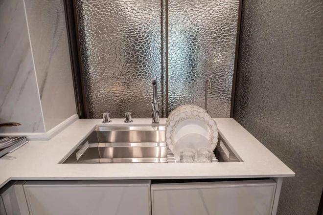 除了户型尺度,招商序售楼处电话:400-9699-334✨【官方认证】✅✅✅的展示空间用料也是在700万这个量级难逢敌手,整个展示空间,除了卧室的拼花地板,其他区域的地面与墙面几乎全是岩板与奢石。连卫生间墙面都做到了岩板通铺....这种用料一般只有千万级的豪宅才能看到,114的客厅背景墙也采用了天然大理石搭配岩板交付,岩板因工艺复杂、性能优异,多用于高端场景,招商序厨房、 卫生间墙面地面,客餐厅地面连通阳台,全部通铺岩板,可见硬装投入度之高。