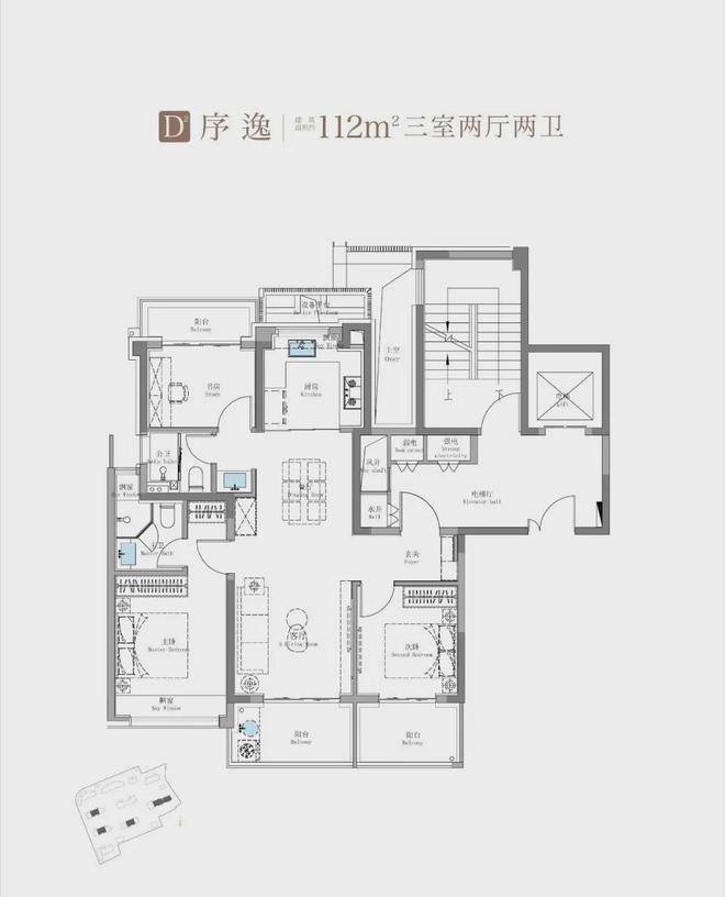 是的,三阳台的设计手法,仿佛一个膨胀剂,将建筑面积114平米的户型,产生了全方位的扩容。