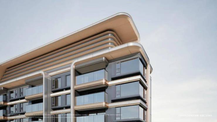 像这个游艇曲线、鎏⾦塔冠,搭配大窗墙比的立面,势必将成为北境更亮丽的天际线