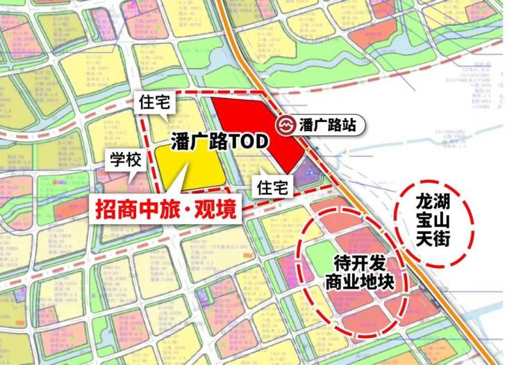 整个招商中旅·观境步行范围内,享受总体量约25万方的招商花园城X+约14万方的龙湖宝山天街+六块的待开发商办用地。示意图仅供参考,数据来源上海发布