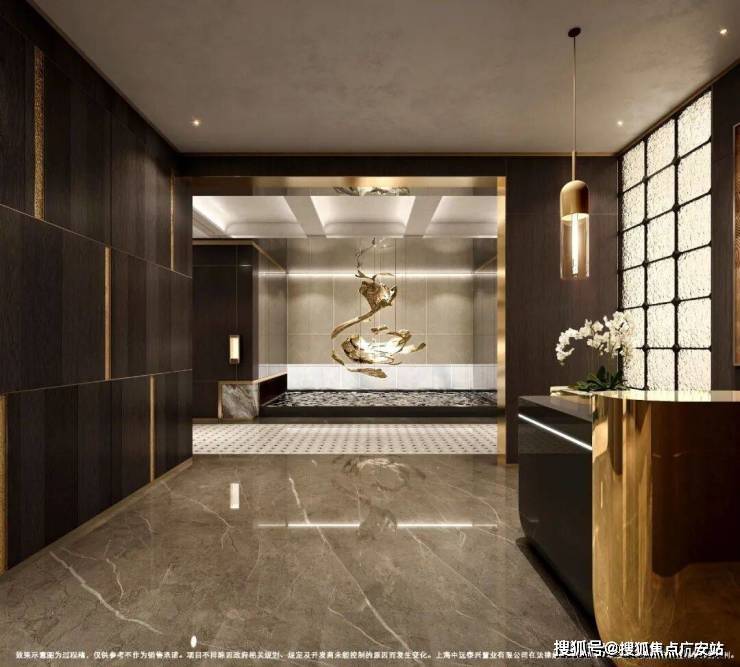 项目一楼设计 星级入户大堂,挑高穹顶之下,天然石材与金属线条交织出当代艺术馆般的恢弘气度。这里不仅是归家的第一重仪仗,更是名流圈层的 社交艺术厅,精致的皮革沙发休憩区,也能成为您会客洽谈的隐贵主场。