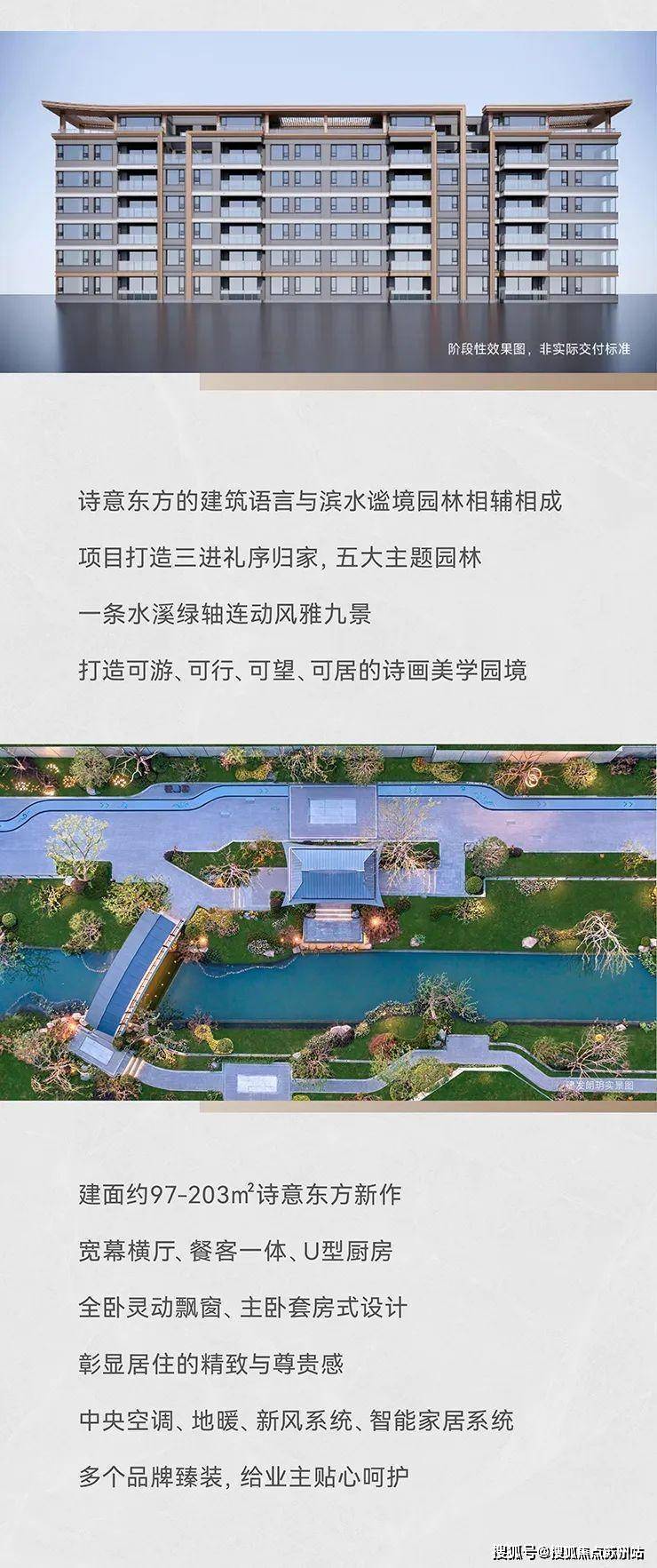 :底部葡萄牙米黄石材+中部仿石铝板+屋顶深咖金属漆,三段式新东方美学;