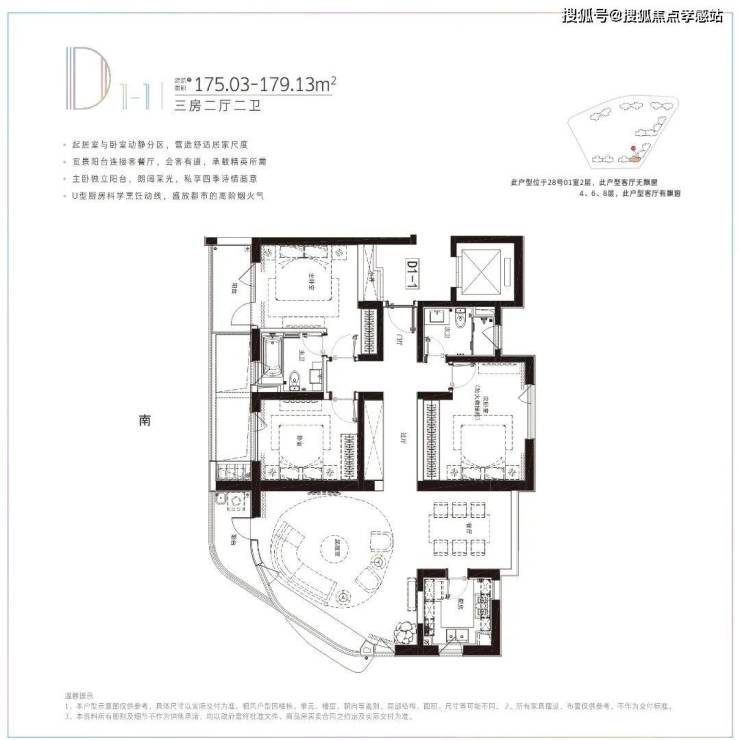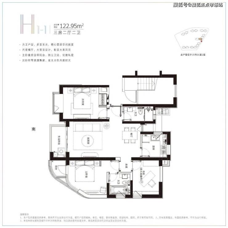 建面约130㎡3房2卫,南北双向大阳台采光不错,客厅预留了充足收纳空间。
