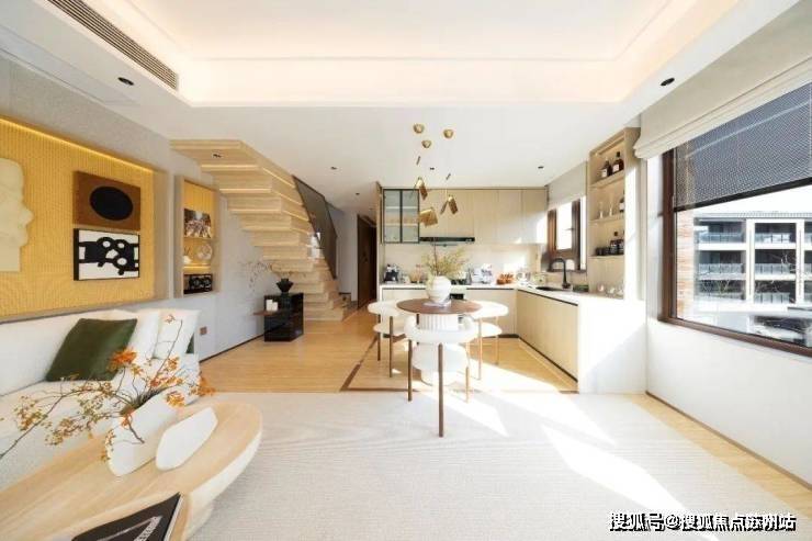 上海崇明东滩海上明月售楼处电话☎:400-8787-740(预约看房热线)楼梯区完全被几何占据,自然光恰到好处的平衡,进一步呼应着空间的心境,衔接了生活和居所。