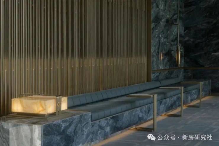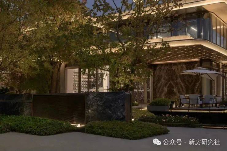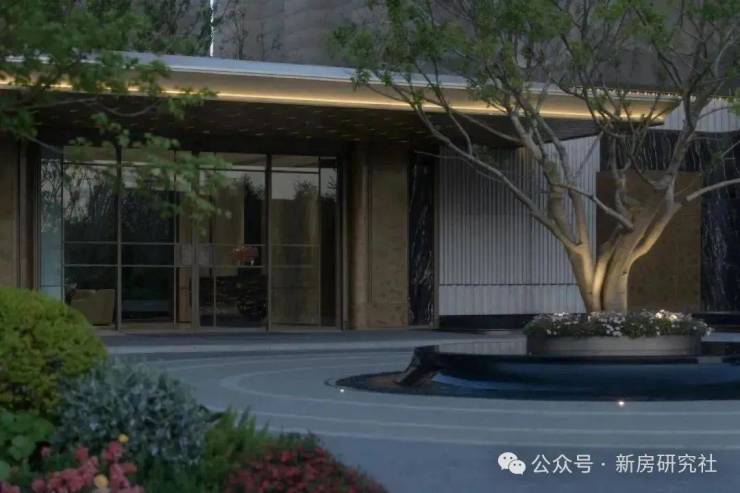 「华发·虹桥四季」售楼处电话:400-8855-420【☎️售楼处认证】✨✨✨入口两边采用实体景墙与格栅形式,形成围合式院落空间,景墙前端采用奢石与金属点缀,墙面使用照壁灯有序排列,尽显奢侈度假风范。两侧阵列植物绿化,营造迎宾仪式感,凸显品质与调性。 院落内部设计采用了酒店式下落客的设计手法,中心圆形水盘聚八方之财气,寓意财源风水。圆盘水景中间选用特选造型树点缀,营造浓郁的度假氛围。配备豪华酒店式落客区的大堂设计,实现业主尊贵的归家仪式。