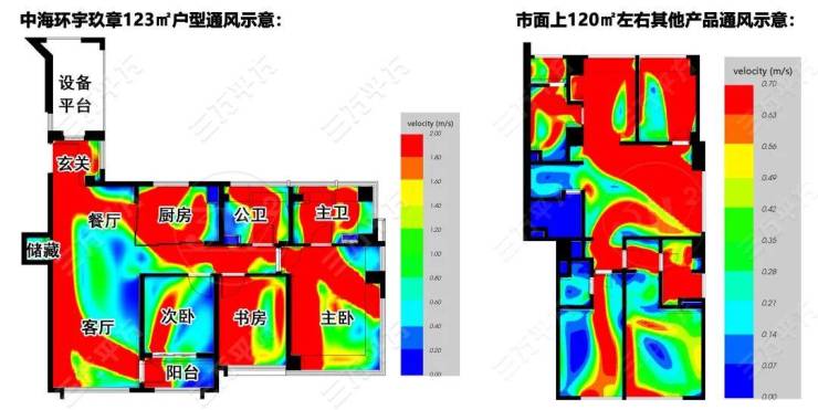 对比同面积段其他产品,多为2-3开间长进深户型,存在部分房间无法形成风回流的情况,实际居住时体感较为沉闷。(如下图)
