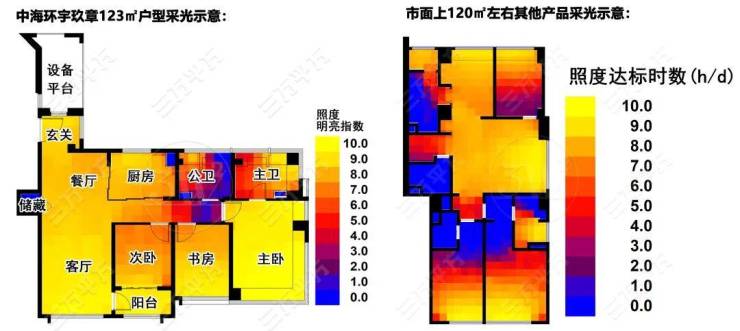 同样的,市面上其他140㎡左右产品,暗区面积较大,采光通透性较差。