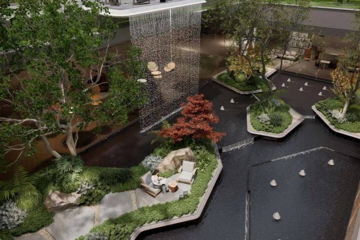 另外,项目巧妙利用地下空间,延续玖系会所,打造全市罕见约2000㎡下沉公园会所,通过地下与社区连通,避免占用社区内部的景观空间。