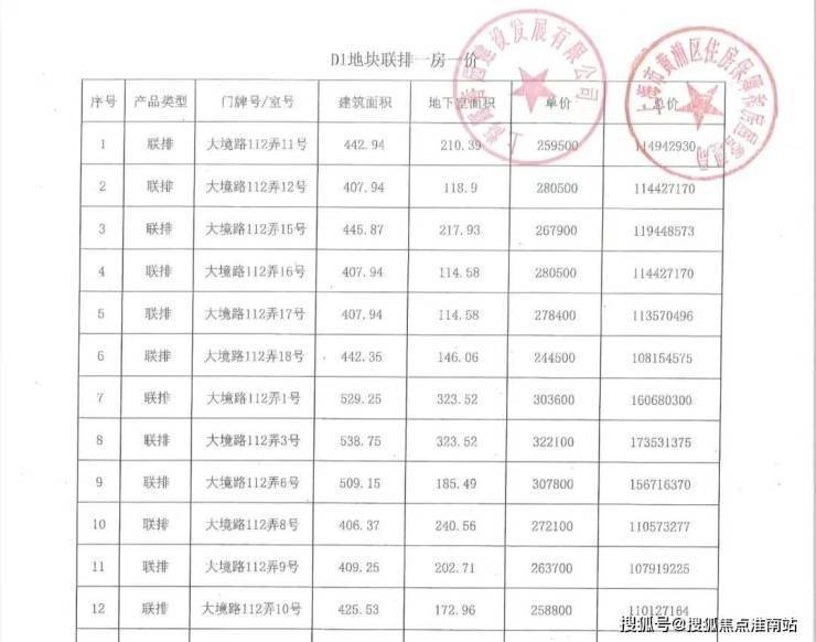 【一房一价表】