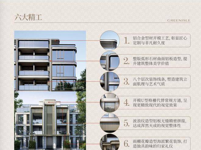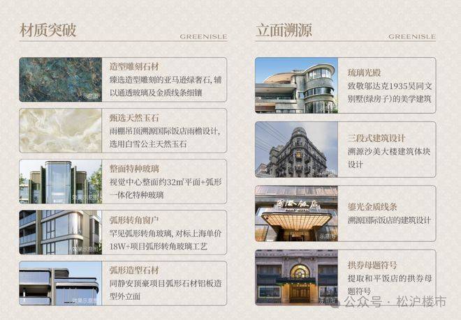 项目的建筑立面:巴西进口亚马逊绿奢石、弧角玻璃和铝板,这样颠覆性的组合在外环别墅项目中,可以说是非常少见的存在。