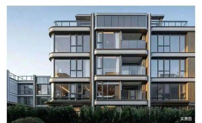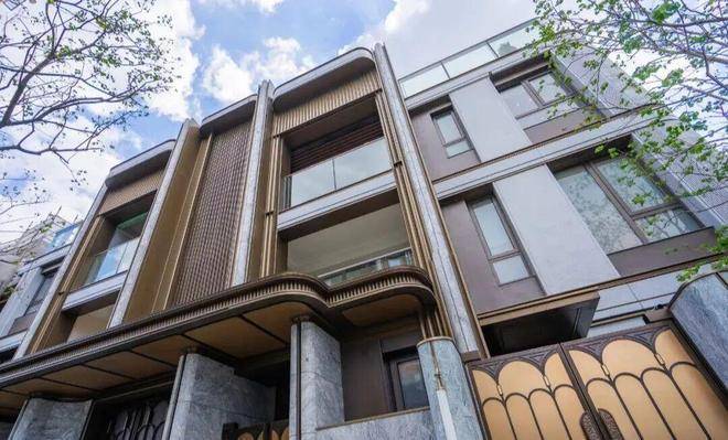 其次,叠墅立面以香槟金属线条勾勒,搭配威斯康白石材与弧形转角全景窗,不仅赋予建筑海派优雅的轮廓,更实现室内270°无界视野与满屋阳光