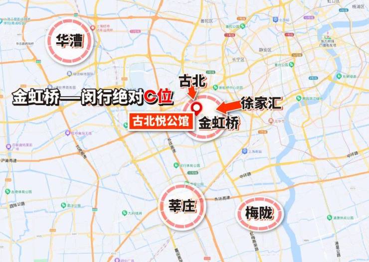 1. 古北悦公馆,属于闵行金虹桥,非传统长宁古北,但是属于古北拓展区,在传统古北无土地供应的情况下,是未来建设发展的方向,已打造古北壹号、古北中央公园、古北大成公馆等知名豪宅,且价格高且坚挺;靠近中环