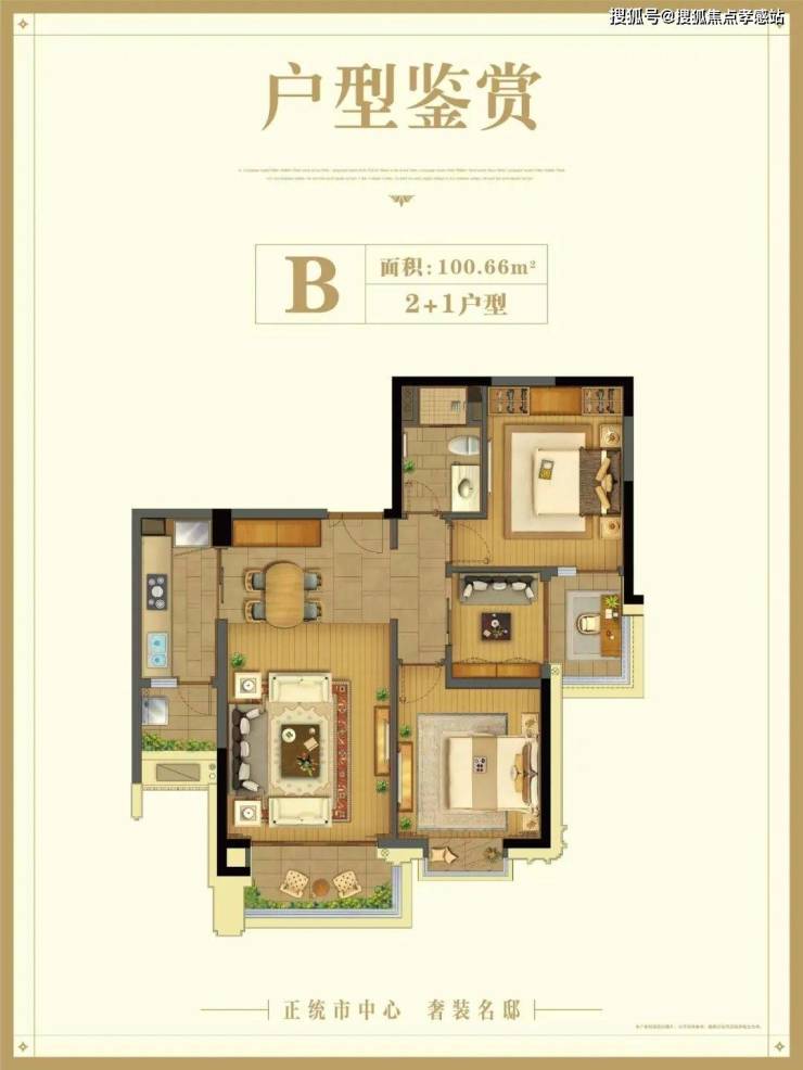 建面约100.66㎡2+1户型▼