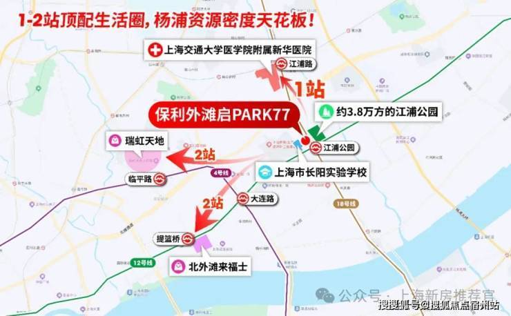 而保利外滩启PARK77与北外滩地王直线距离仅约2.2公里,未来将与北外滩共享界面更新、配套升级、生活方式迭代,更将同步承接价值的全面焕新 。