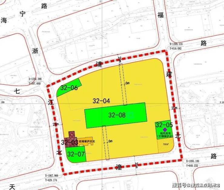 32-05地块内保留1处文物保护点:32-04地块内保留1处二级风貌建筑。32-04地块内设置南北向公共通道及地块内部广场,其中,公共通道宽度不低于6米,地块内部广场面积不低于700㎡。